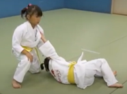 • Uke uses left arm to reach up and grab Tori’s belt and tries to turn Tori over.