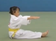 Then sit up with legs and arms extended, fall back into a breakfall with feet pointing straight up. Repeated twice.