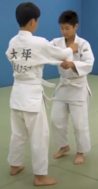 • Tori and Uke take Kumi Kata grips, in Shizen Hontai. Uke takes a step forward with their right foot